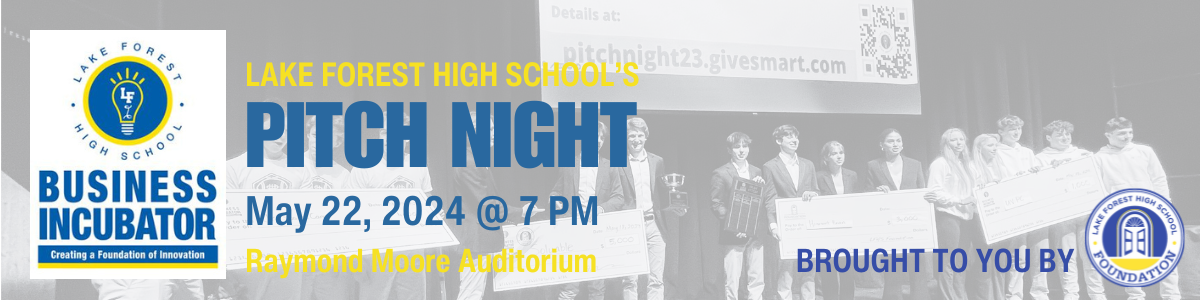 We hope that everyone will JOIN US on May 22nd for Pitch Night 2024. It should be an exciting evening filled with the enthusiasm, hope and promise of LFHS student teams who are working so hard to get their businesses up and running.