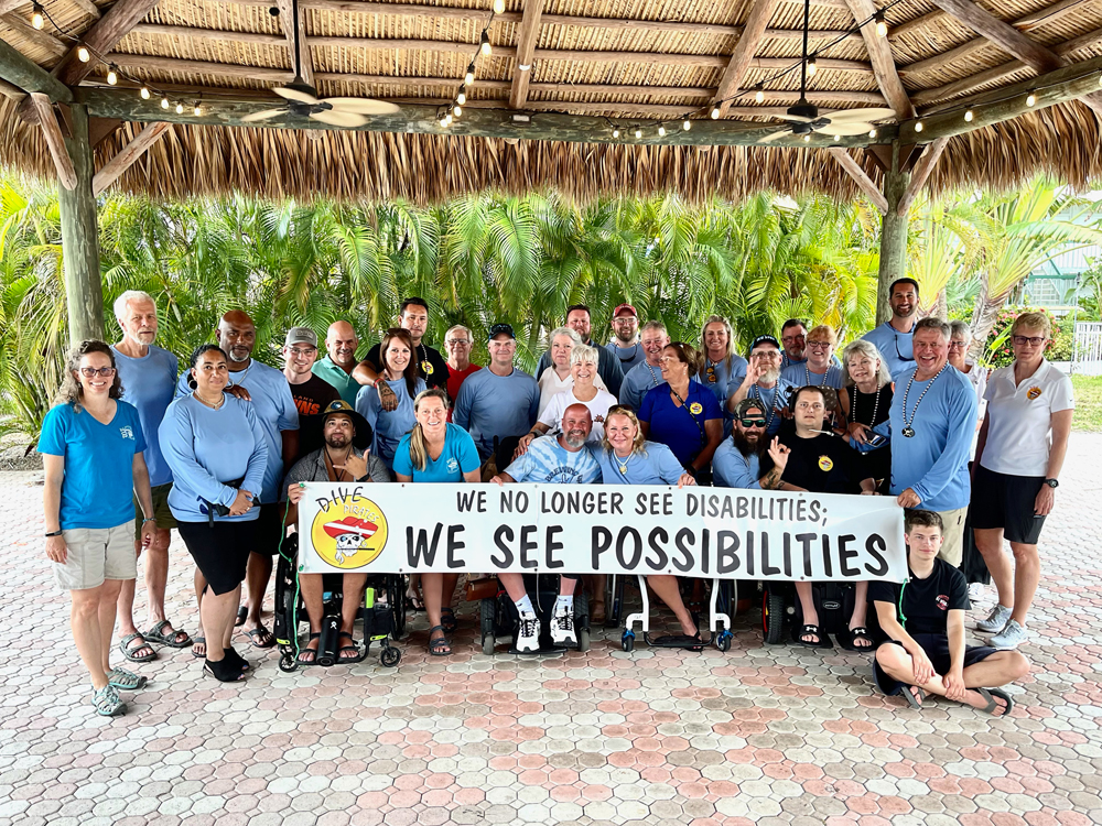 Dive Pirates Foundation recruits injured veterans, law enforcement, emergency first responders and others who are medically qualified and physically disabled. With your support, we are able to train and equip recipients to scuba dive along with an adaptive dive buddy and then take them on a trip of a lifetime. Most importantly we encourage our pirates to keep diving and enjoy this life-changing mobile sport with family and friends for years to come. Celebrating life after injury!